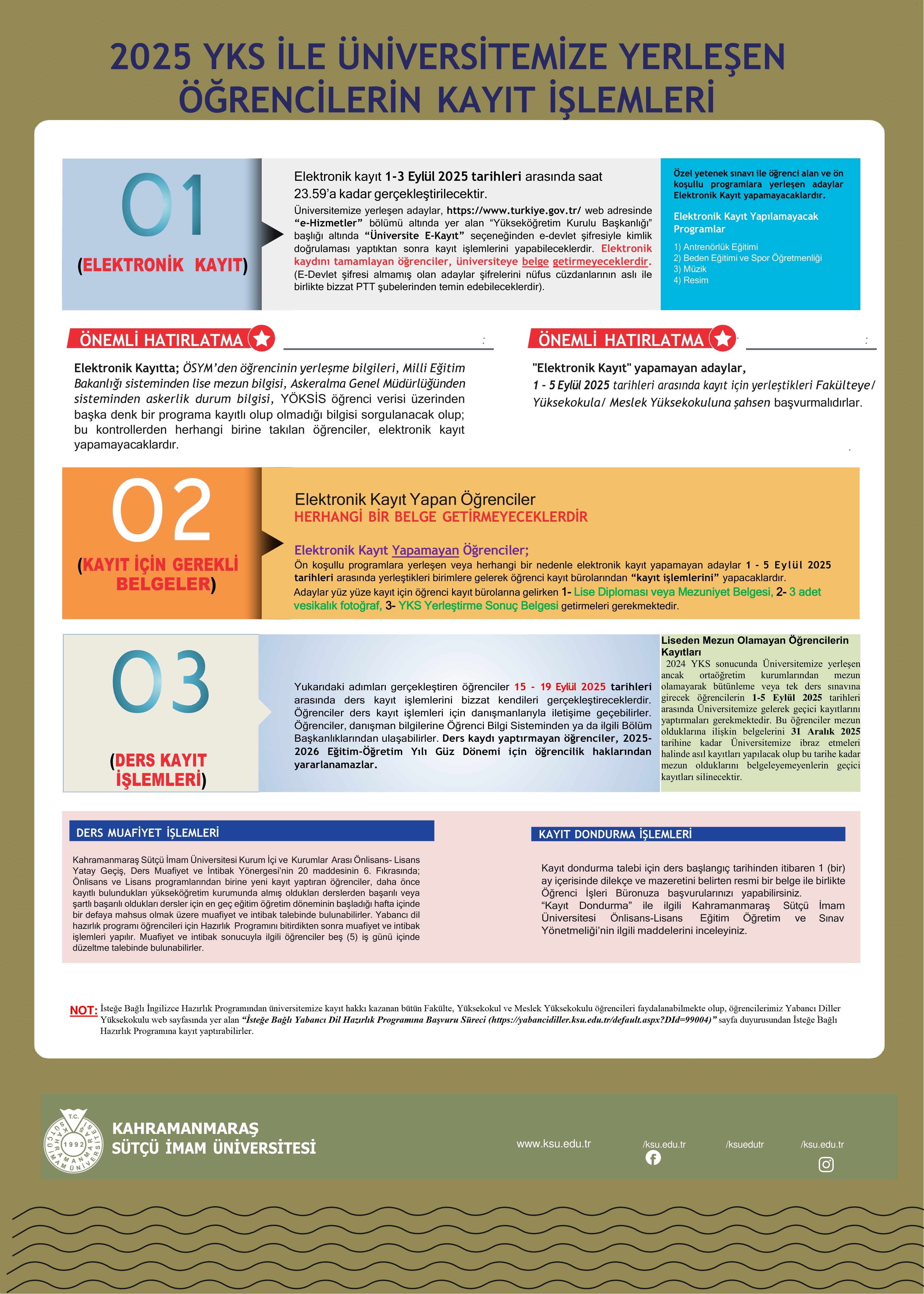 03.09.2025 - 2025 YKS Sonucu ile Üniversitemize Yerleşen Öğrencilerin Kayıt İşlemleri